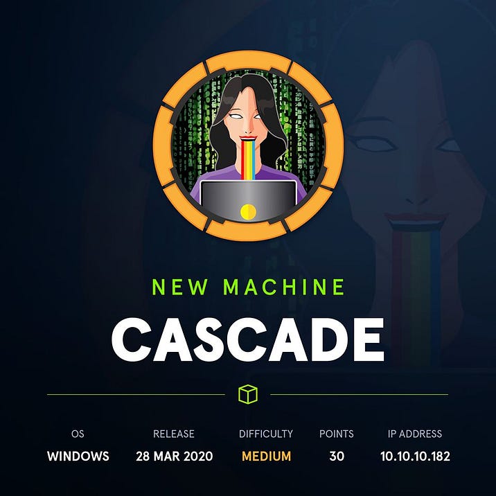 HackTheBox July 25, 2020 HackTheBox - Cascade Medium Level Active Directory Environment #hacking #Active Directory #Penetration Testing