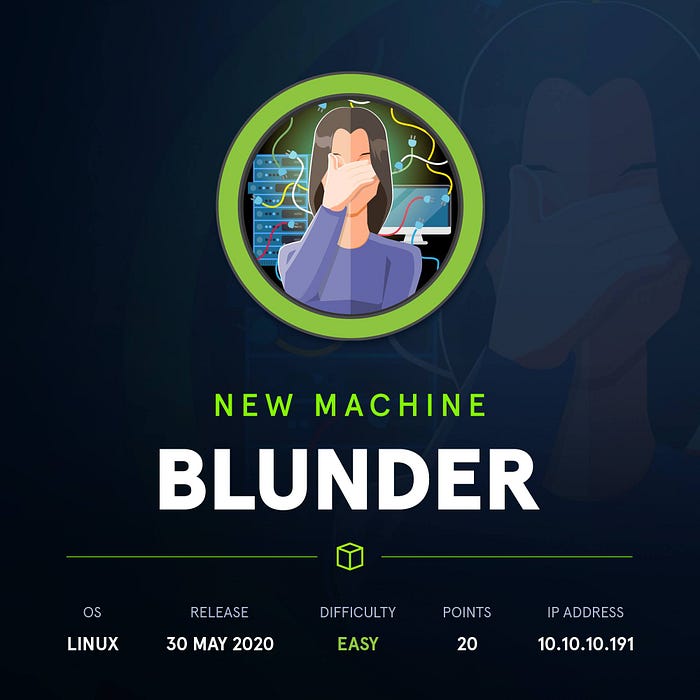 HackTheBox October 17, 2020 HackTheBox - Blunder Easy Linux Machine containing Bludit and sudo Security Bypass Privilege Escalation #sudo #bludit #linux