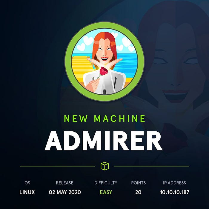 HackTheBox September 26, 2020 HackTheBox - Admirer Admirer was a medium level machine which had vulnerability of web for Admirer and privilege escalation through python library hijacking #hackthebox #linux
